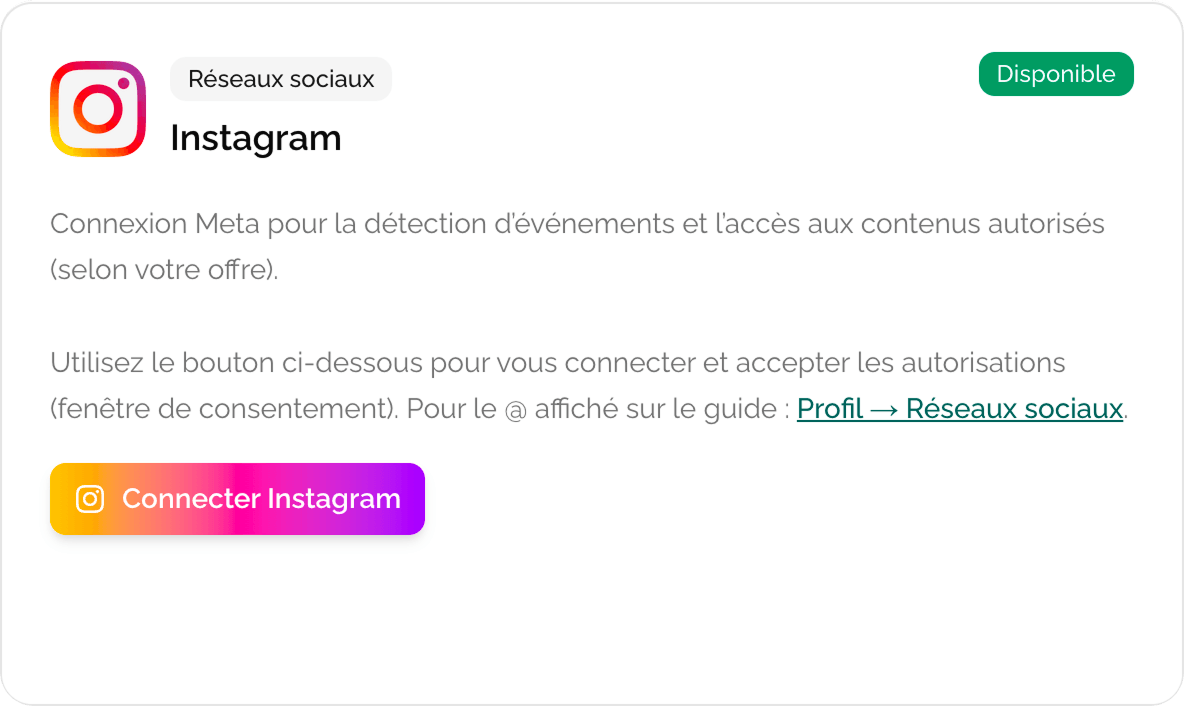 Connexion Instagram et import automatique de vos événements